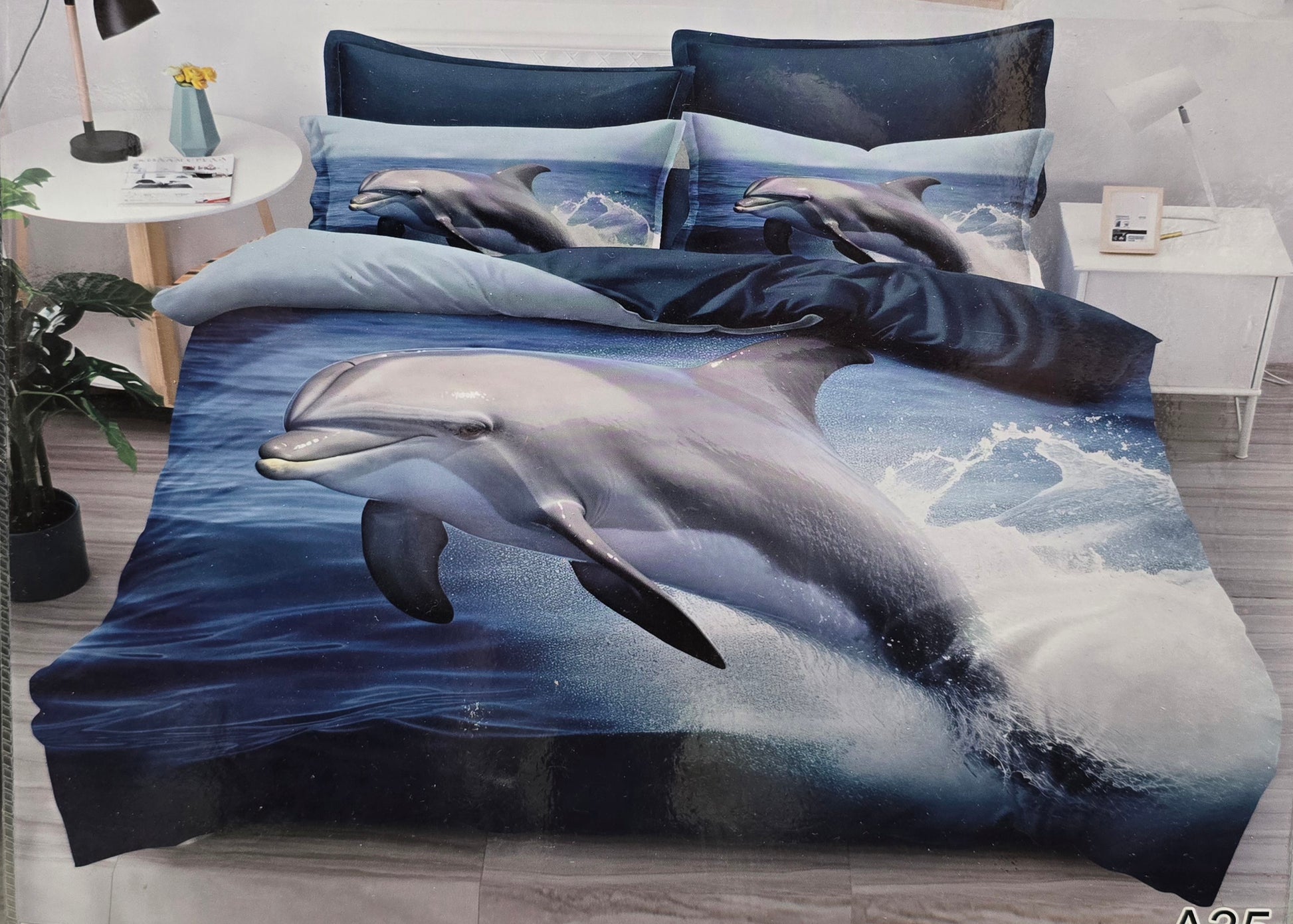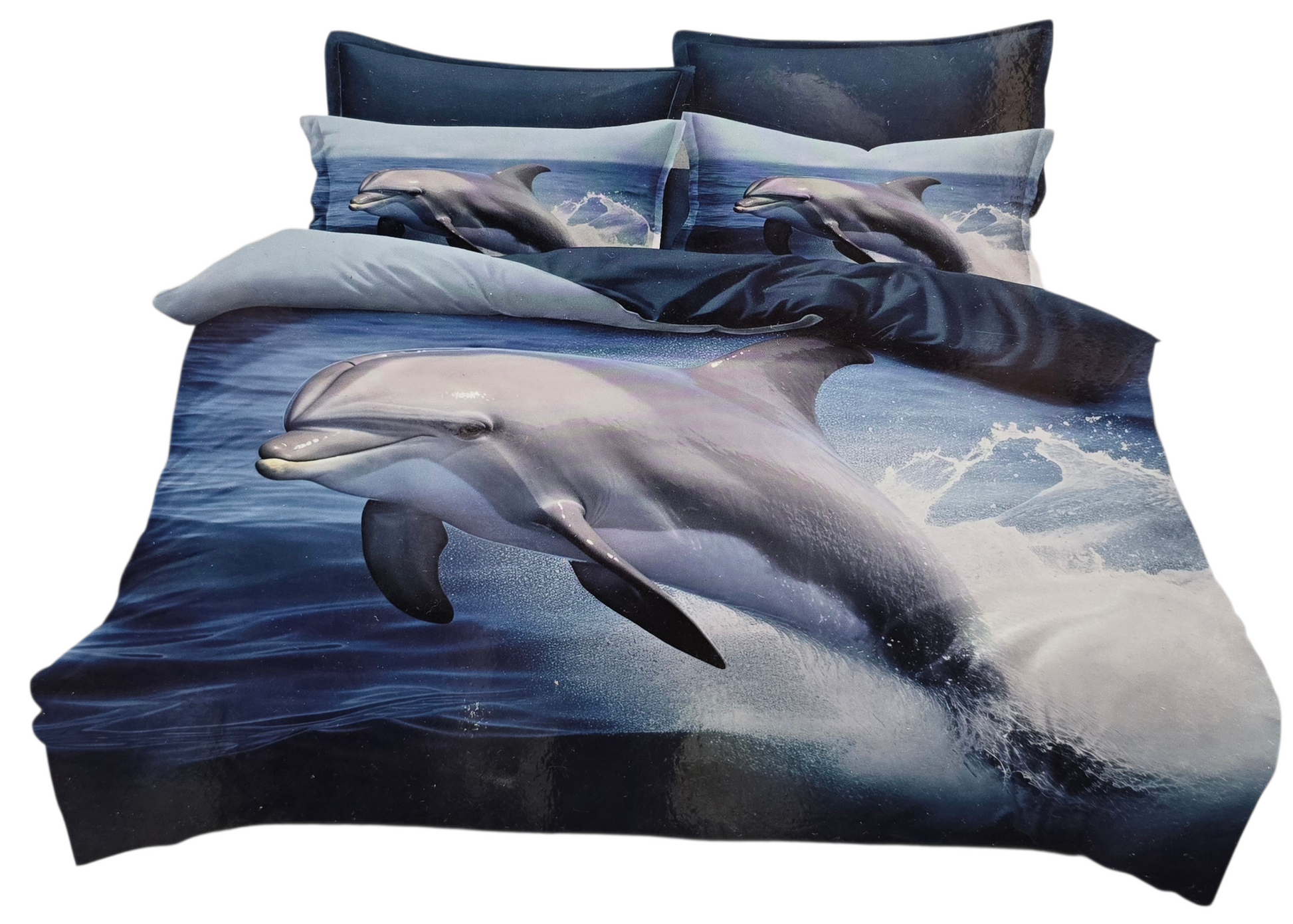 Gultas veļas komplekts Milano,200x220cm, 4 daļas, zils ar delfiniem