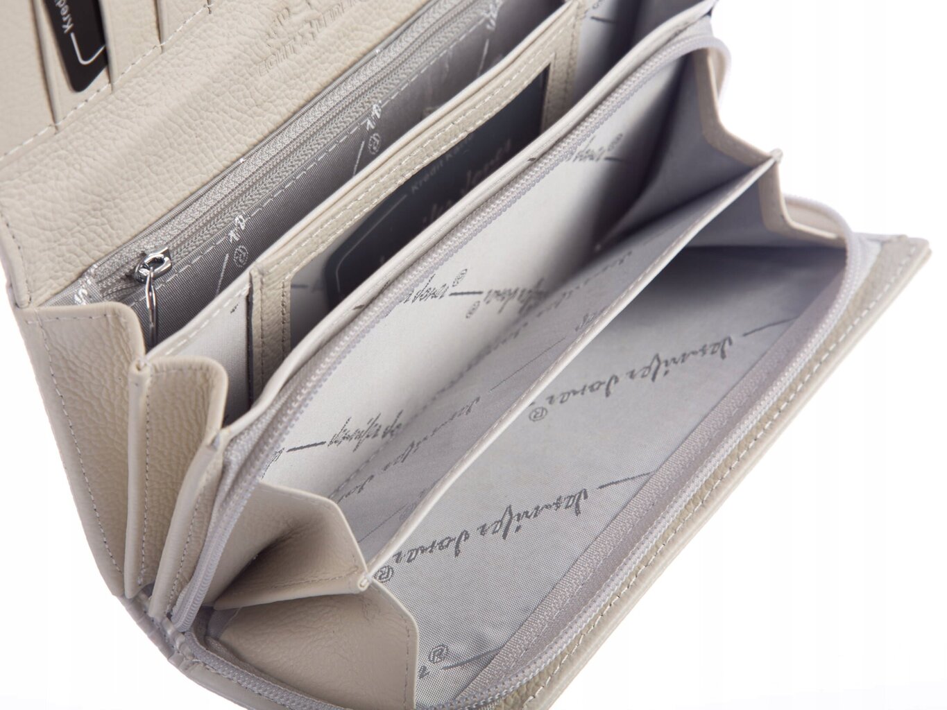 Šis sieviešu maks ir pievilcīgs ikdienas aksesuārs. Pateicoties tā lielajiem izmēriem, jūs varat ērti ievietot visu, kas jums nepieciešams ikdienā. Aizverams ar izturīgu rāvējslēdzēju. Ārpusē redzams ražotāja Dženiferas Džounsas logotips.