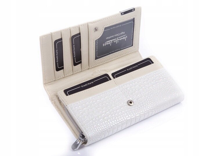 Ērtais izkārtojums iepriecinās pat visprasīgāko sievieti. Iekšpusē ir 10 nodalījumi maksājumu karšu, lojalitātes karšu un plastmasas dokumentu, piemēram, ID karšu, glabāšanai. Turklāt makam ir kabata ar rāvējslēdzēju monētām un 2 ietilpīgi nodalījumi banknotēm.