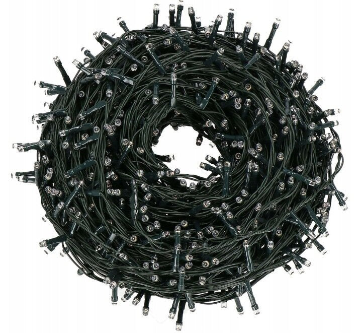 LED ziemassvētku virtene 500 LED, krāsaina. Garums ar vadu 38m. Vadības panelis ar 8 mirgošanas režīmiem. IP klase 44, nav ieteicams lietot tiešā ūdens un mitruma ietekmē.